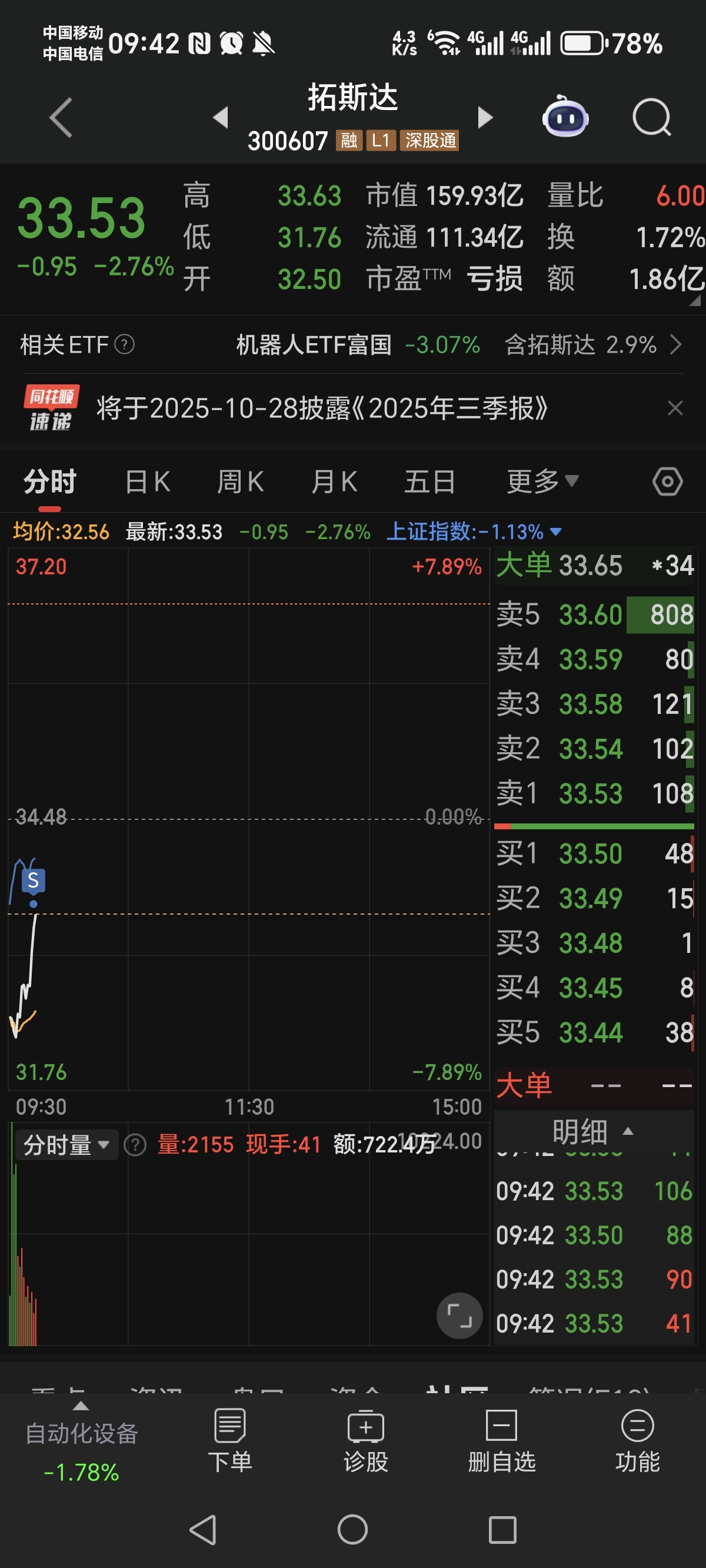 拓斯达股吧所有人,今天喊我一声老神仙不过分吧,看我卖在最高点,尾盘接回来,今天坚