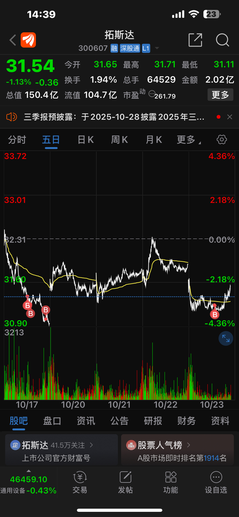 $拓斯达(SZ300607)$ 赌月k亏3个点