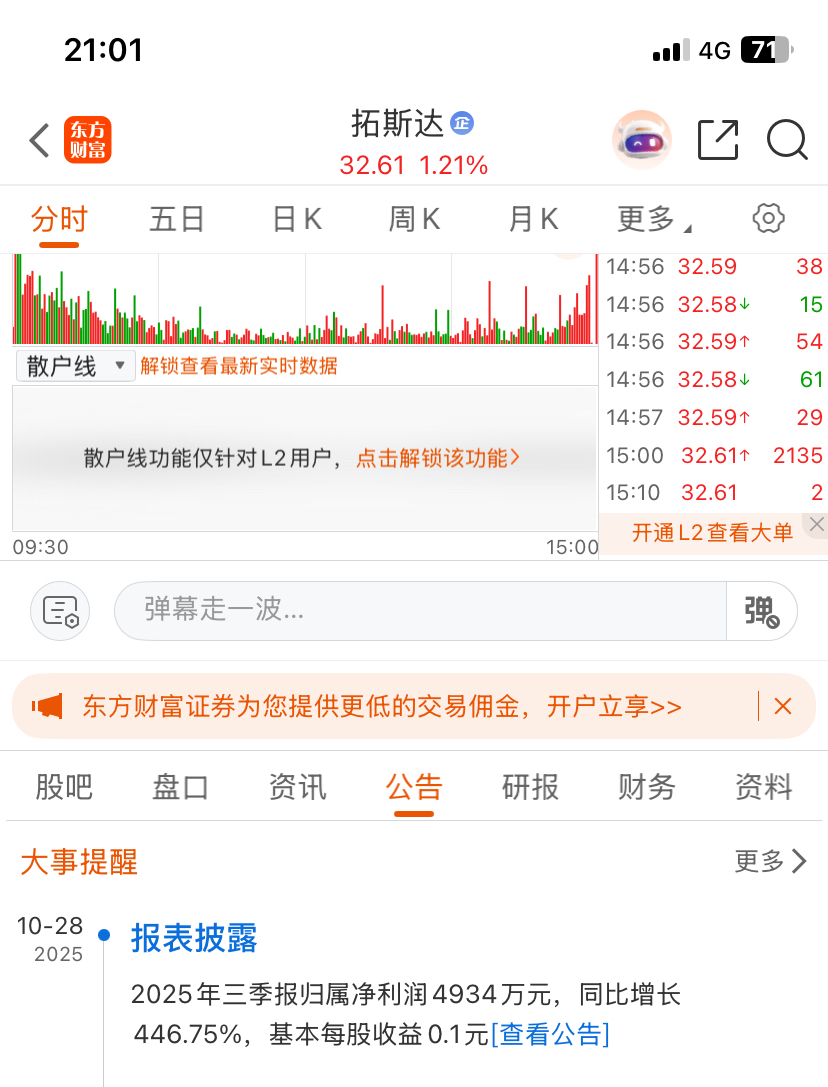 $拓斯达(SZ300607)$ 三季报利润大增447%,明天能拉个天板吗?