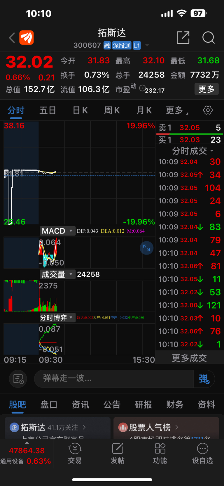 $拓斯达(SZ300607)$ 不要怪不涨,刚刚红,这是哪个大厦B连1手都跑