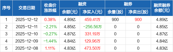 拓斯达:融资净买入459.41万元,融资余额4.89亿元(12-12)