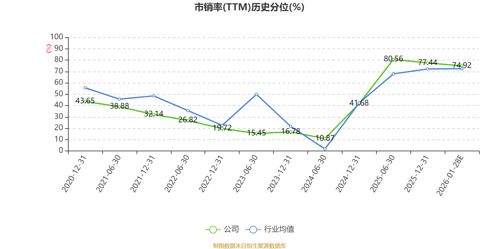 文中市盈率和市销率采用TTM方式,即以截至最近一期财报(含预报)12个月的数据计算。市净率采用LF方式,即以最近一期财报数据计算。三者的分位数计算区间均为公司上市以来至最新公告日。