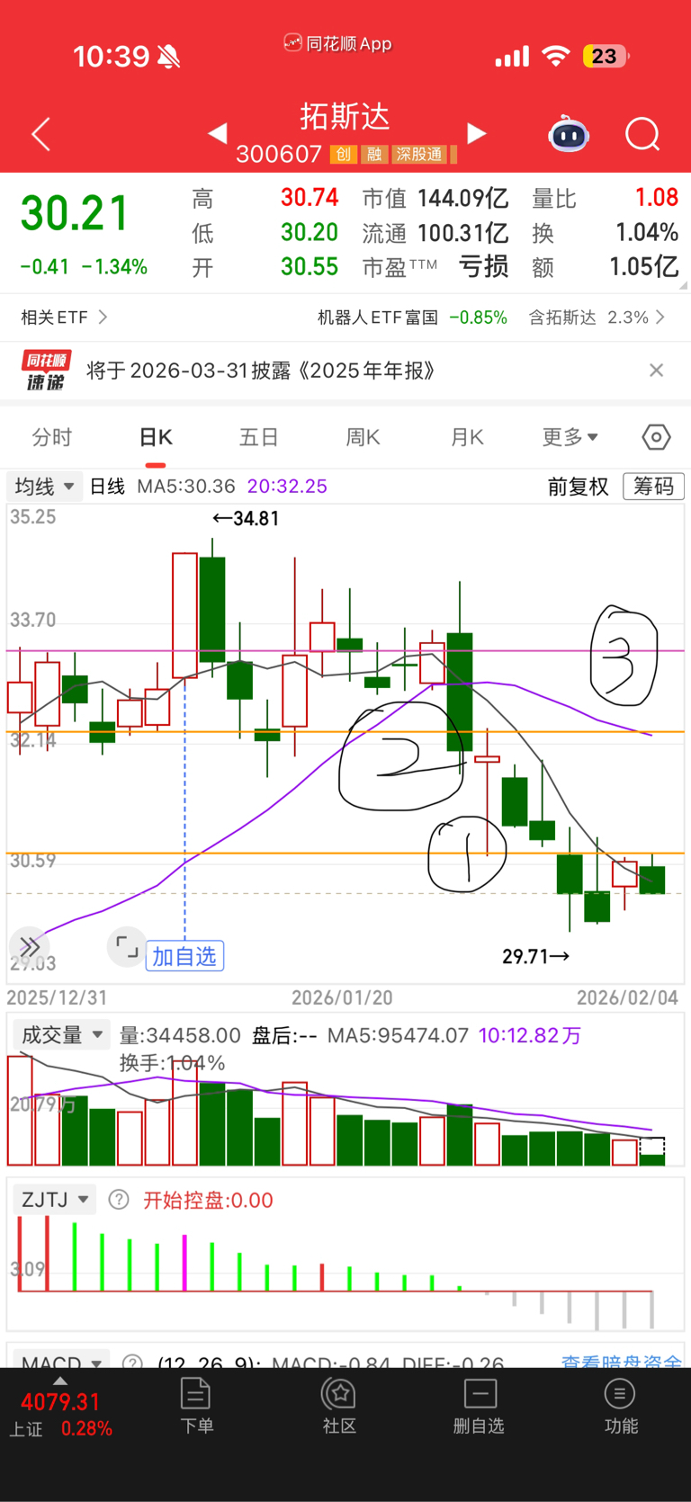$拓斯达(SZ300607)$ 这三根突破不了不要想着他会涨,近半年内最大的成交量高量柱换手率58的换手率,对手盘这么大,还想着涨不现实了已经,下方缺口补,再次探底,结合港股发行.市值需要重估