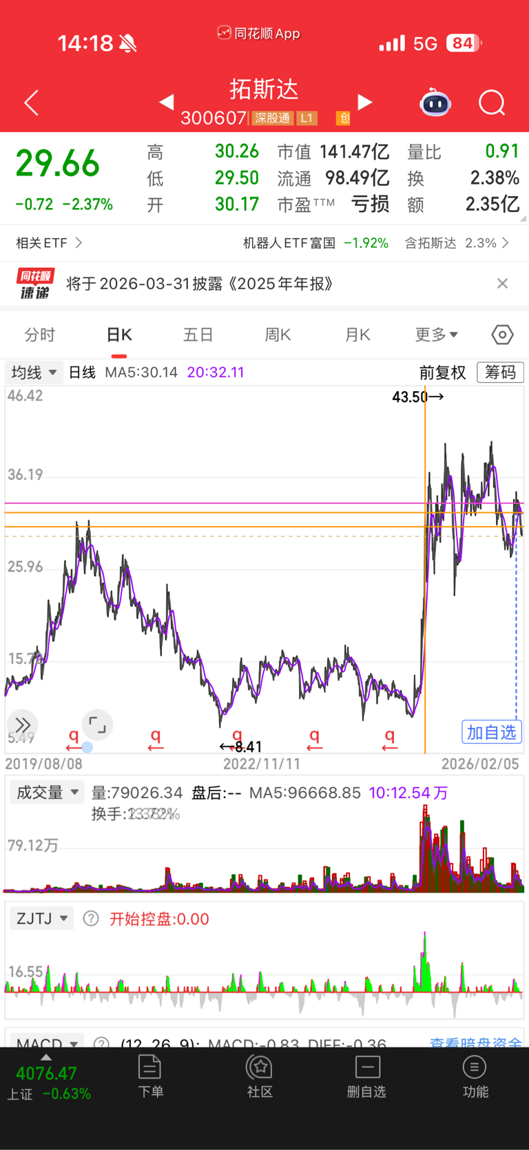 $拓斯达(SZ300607)$ 主力继续出货阶段,8元的筹码从73亿市值干到了140亿,已经严重估值过高