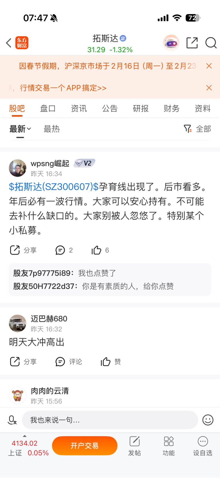 温馨提示: 1.根据《证券法》规定,禁止编造、传播虚假信息或者误导性信息,扰乱证券市场;2.用户在本社区发表的所有资料、言论等仅代表个人观点,与本网站立场无关,不对您构成任何投资建议。用户应基于自己的独立判断,自行决定证券投资并承担相应风险。《东方财富社区管理规定》