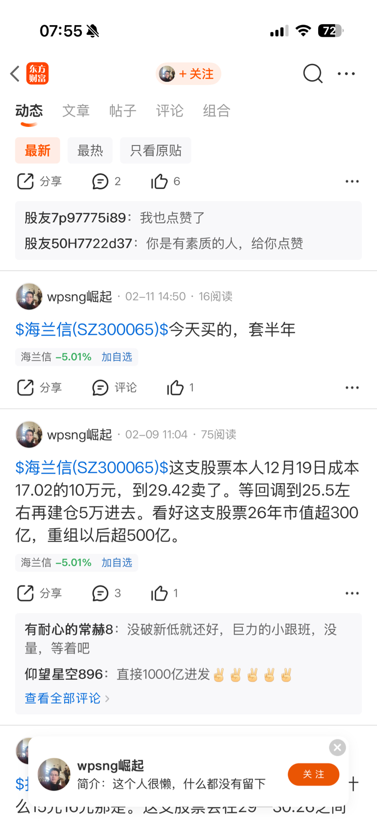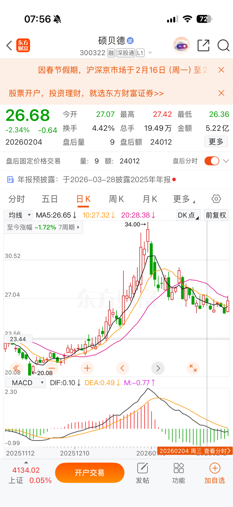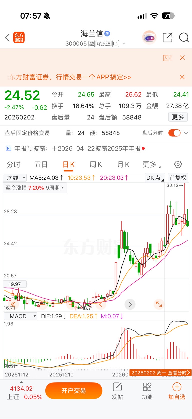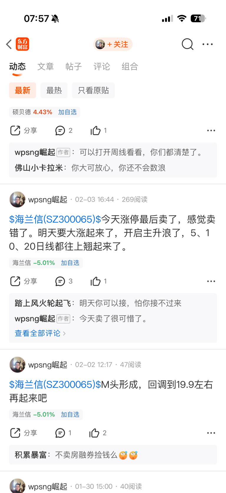 $拓斯达(SZ300607)$ 此人说话一点逻辑都没有,全靠蒙,海兰信2月4号涨停前说M头大概率从24回调到19,结果第二天涨停开板,说自己涨停板买了简直痴人说梦,你是没有吃到板,追高进去,炸板了还看多,第二天低开4个点,第三天低开5个点,你就是个,异想天开那种,一点点吃亏长记性都没有啊,又来拓斯达唱多,害人