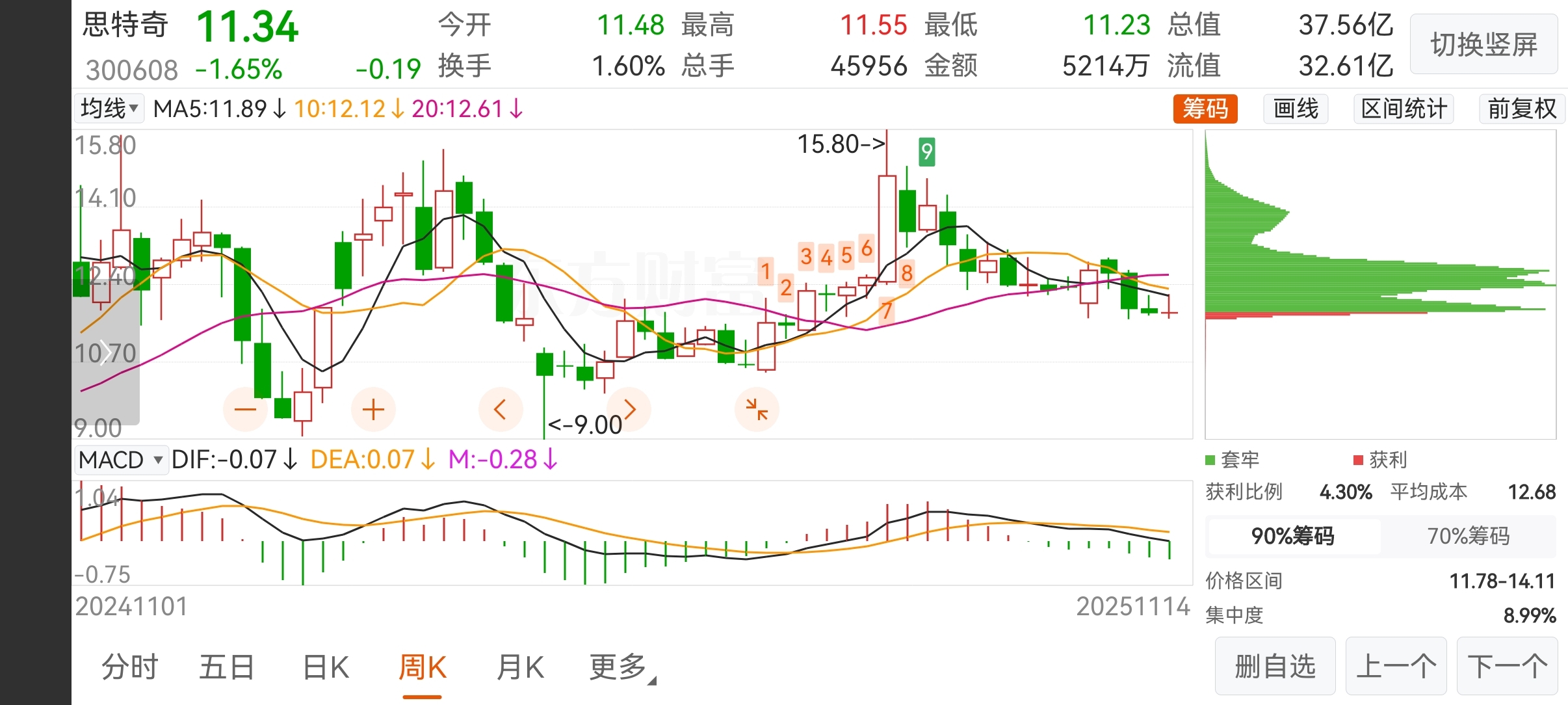 $思特奇(SZ300608)$ 又要到9块,十八连跌