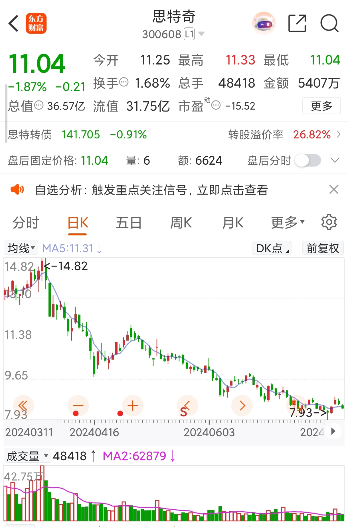 $思特奇(SZ300608)$ 这是要复制2024年3月那段走势?吓人