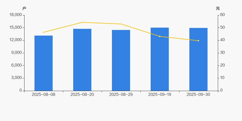 2025年8月8日至今,公司股东户数显著增长,区间涨幅为13.88%。2025年8月8日至2025年9月30日区间股价下降14.44%。