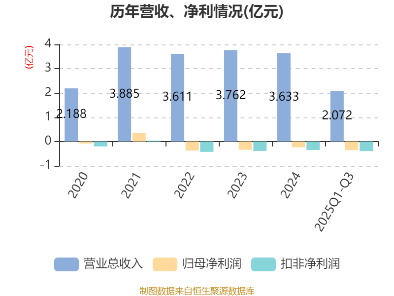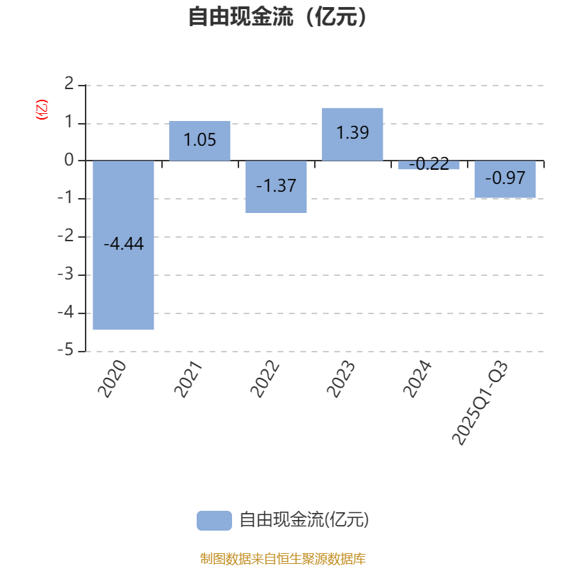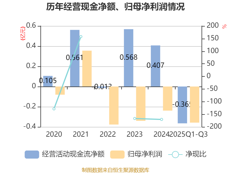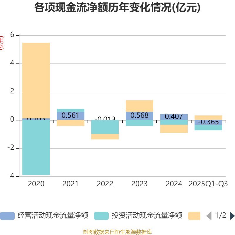 2025年前三季度,公司经营活动现金流净额为-3651.78万元,同比增加625.03万元;筹资活动现金流净额3149.88万元,同比增加8552.73万元;投资活动现金流净额-3732.84万元,上年同期为-372.46万元。