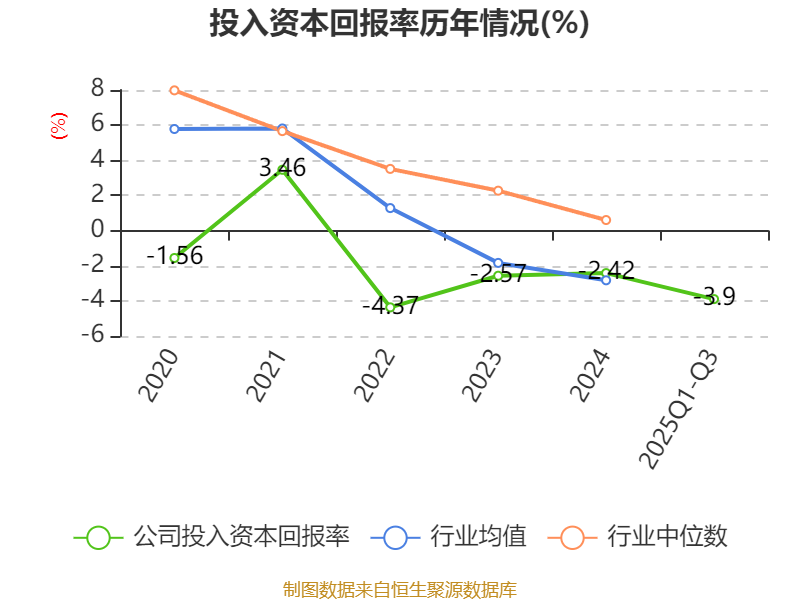 盈利能力方面, 2025年前三季度公司加权平均净资产收益率为-3.54%,同比上升0.13个百分点。公司2025年前三季度投入资本回报率为-3.9%,较上年同期上升2个百分点。