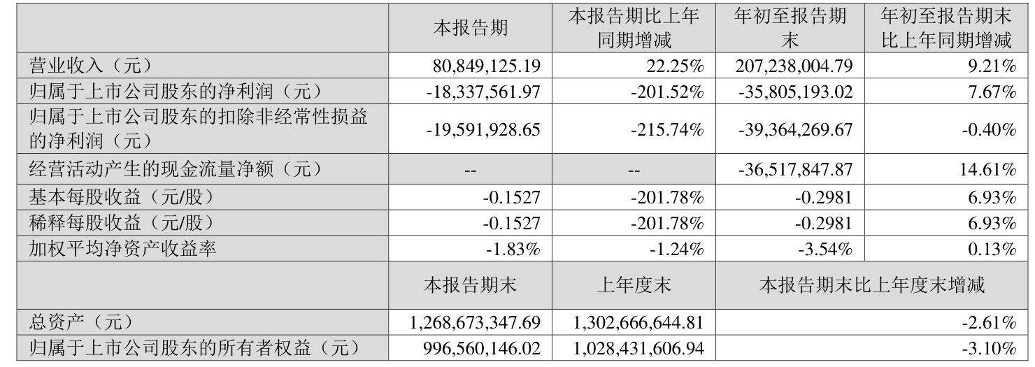 中证智能财讯汇纳科技(300609)10月30日披露2025年第三季度报告。前三季度公司实现营业总收入2.07亿元,同比增长9.21%;归母净利润亏损3580.52万元,上年同期亏损3877.82万元;扣非净利润亏损3936.43万元,上年同期亏损3920.83万元;经营活动产生的现金流量净额为-3651.78万元,上年同期为-4276.81万元;报告期内,汇纳科技基本每股收益为-0.2981元,加权平均净资产收益率为-3.54%。