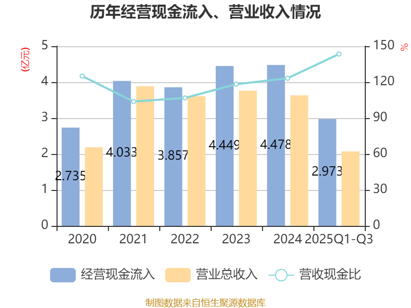 2025年前三季度,公司流动比率为2.97,速动比率为2.59。