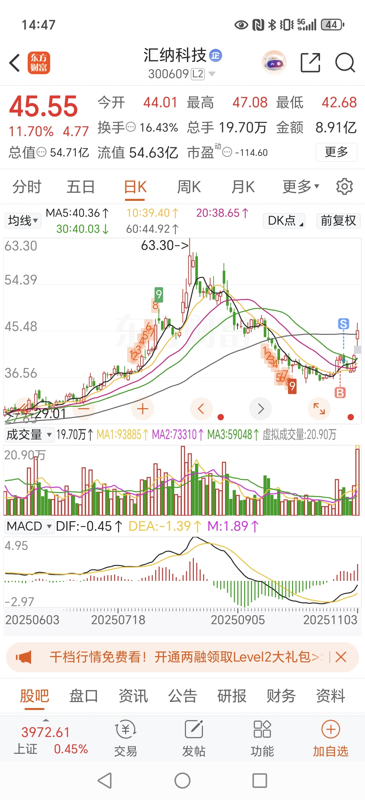 $汇纳科技(SZ300609)$ 我是韭菜