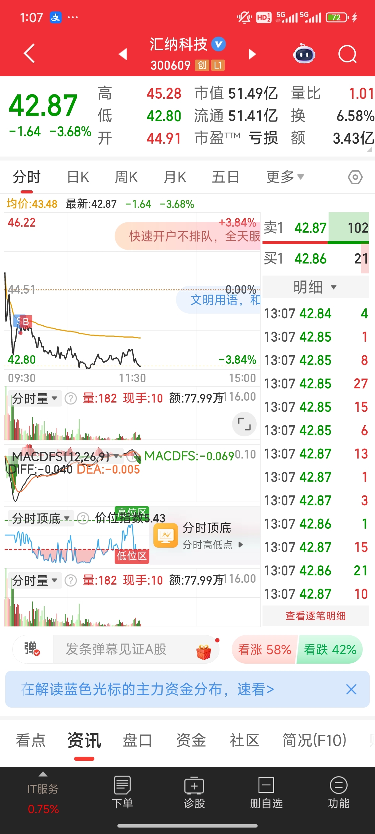 $汇纳科技(SZ300609)$ 今天犯了个很猪的错位,早上想出了她去星图做t,结果卖了后点买又买了他,真是没事干吃饱了撑的