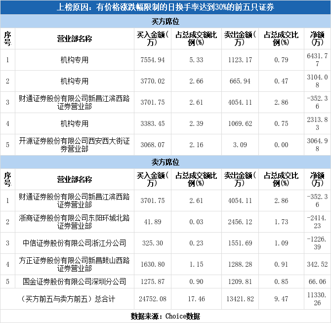 多主力现身龙虎榜,美力科技上涨17.33%(10-09)