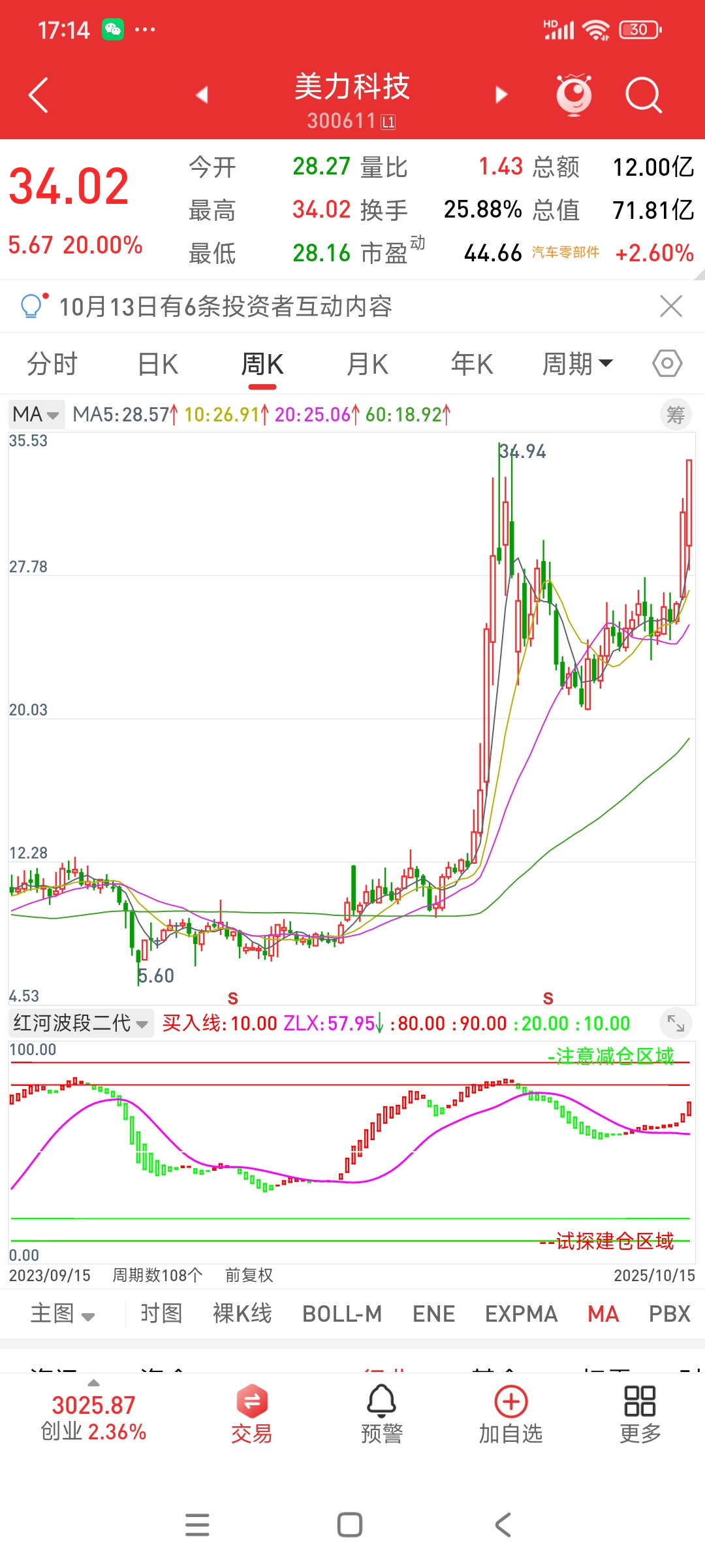 $美力科技(SZ300611)$  周线日线都是红柱延续,确实没有不涨的理由,毕竟红柱不停,上涨不止,红柱拉长,加速不止,继续冲