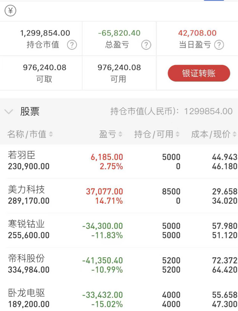 计划的第一百零三天新仓新仓持有不动帝科股份:持有不动卧龙电驱:持有不动