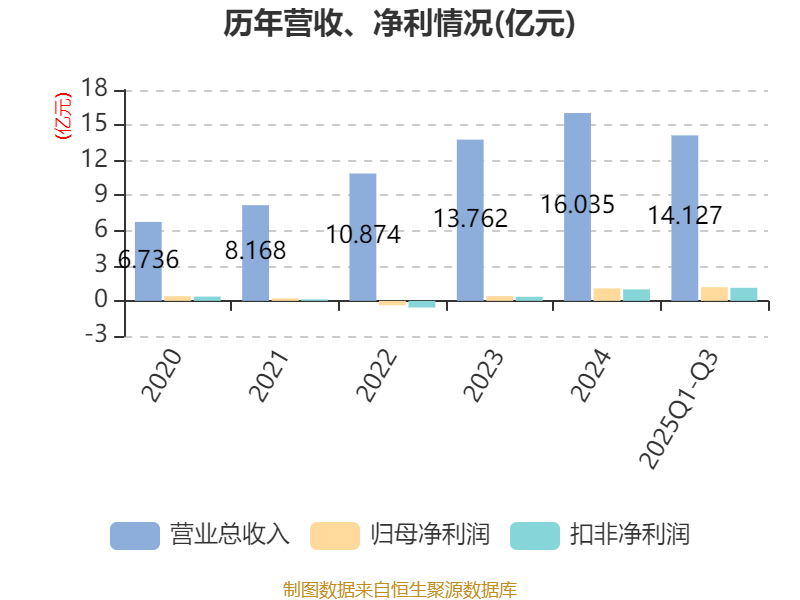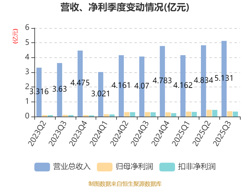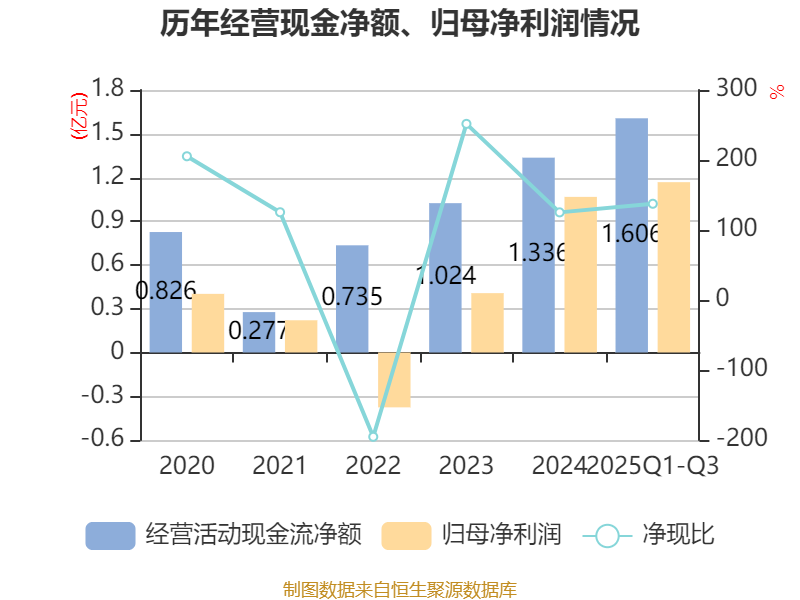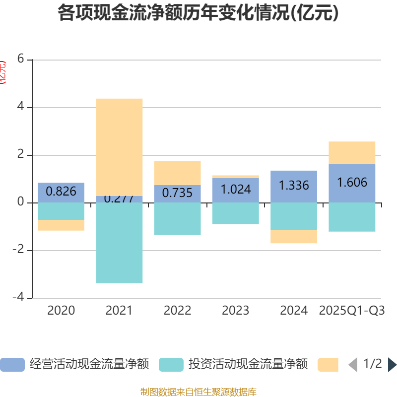 2025年前三季度,公司经营活动现金流净额为1.61亿元,同比增长102.96%;筹资活动现金流净额9521.57万元,同比增加9496.64万元;投资活动现金流净额-1.22亿元,上年同期为-3774.77万元。