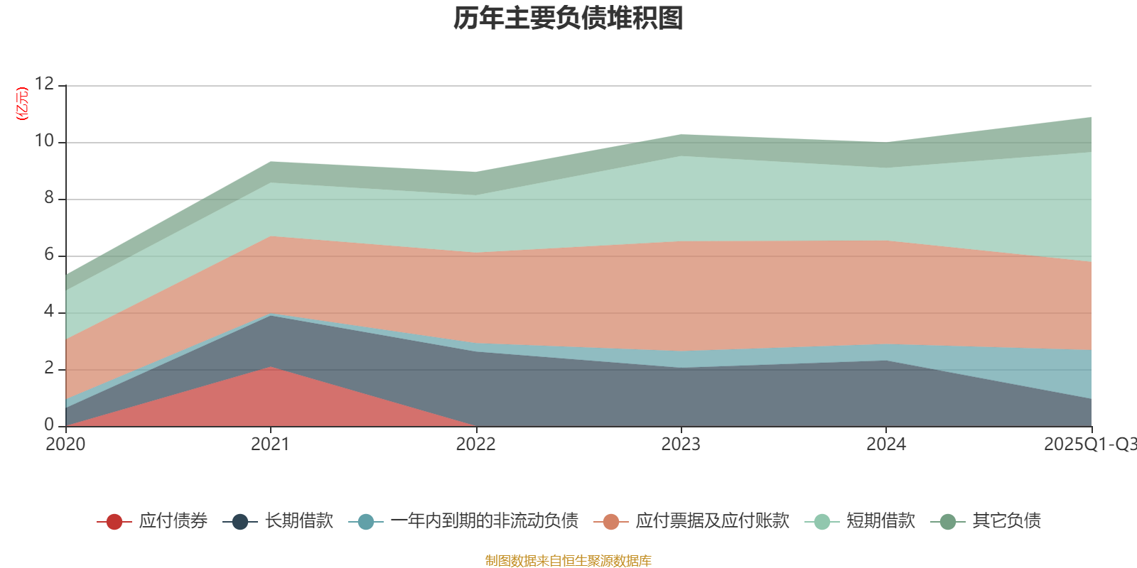负债重大变化方面,截至2025年三季度末,公司长期借款较上年末减少58.55%,占公司总资产比重下降6.65个百分点;一年内到期的非流动负债较上年末增加197.58%,占公司总资产比重上升4.49个百分点;短期借款较上年末增加50.8%,占公司总资产比重上升4.26个百分点;应付票据及应付账款较上年末减少14.72%,占公司总资产比重下降3.86个百分点。