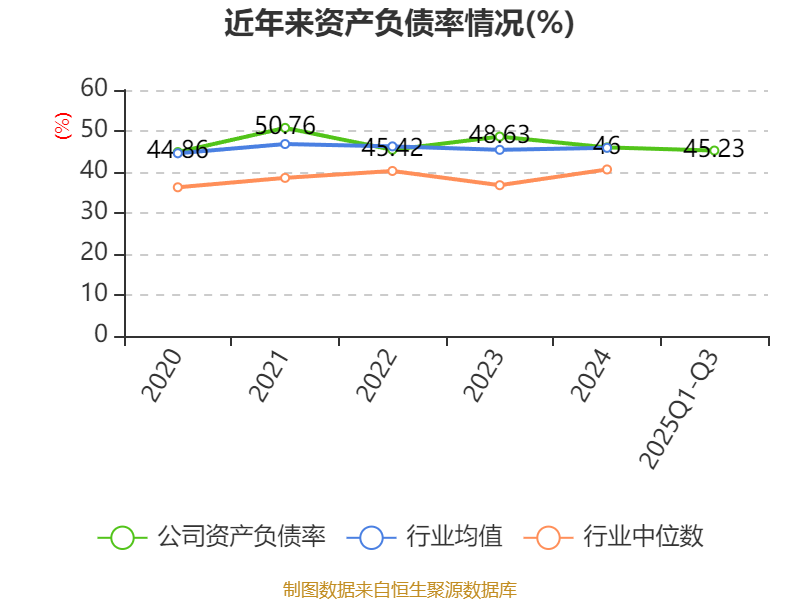 2025年前三季度,公司流动比率为1.44,速动比率为1.05。