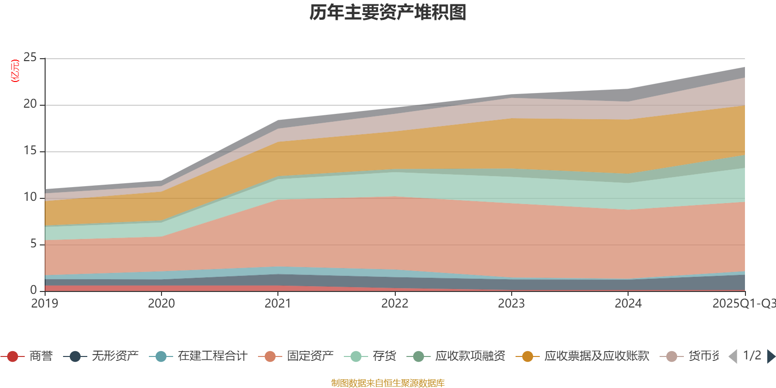 资产重大变化方面,截至2025年三季度末,公司应收票据及应收账款较上年末减少8.42%,占公司总资产比重下降4.64个百分点;货币资金较上年末增加55.11%,占公司总资产比重上升3.55个百分点;固定资产较上年末增加0.31%,占公司总资产比重下降3.24个百分点;存货较上年末增加27.53%,占公司总资产比重上升1.99个百分点。