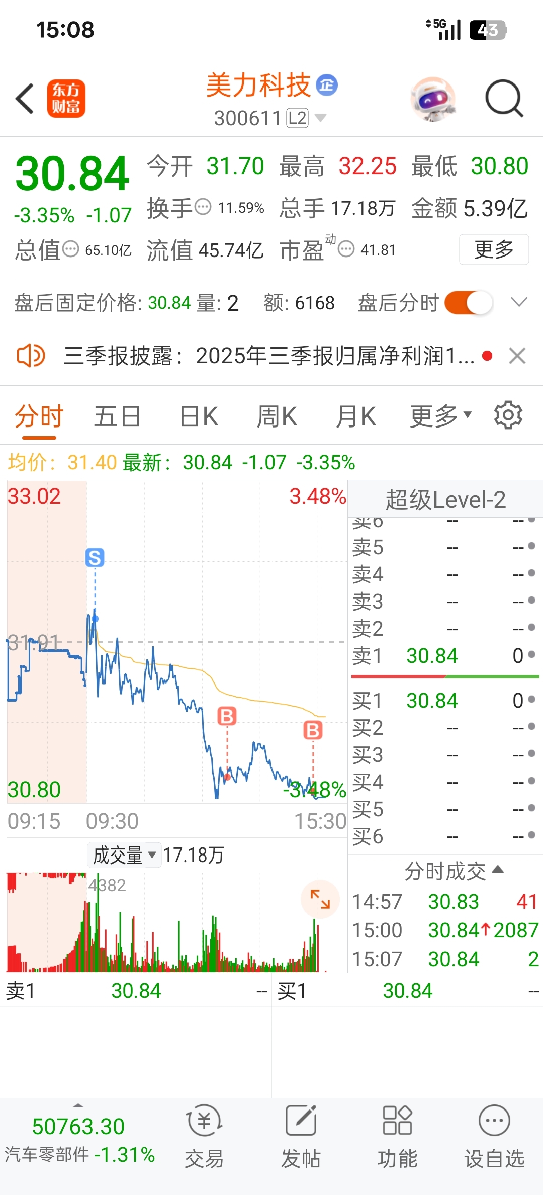 $美力科技(SZ300611)$ 这操作可行,明天继续做T