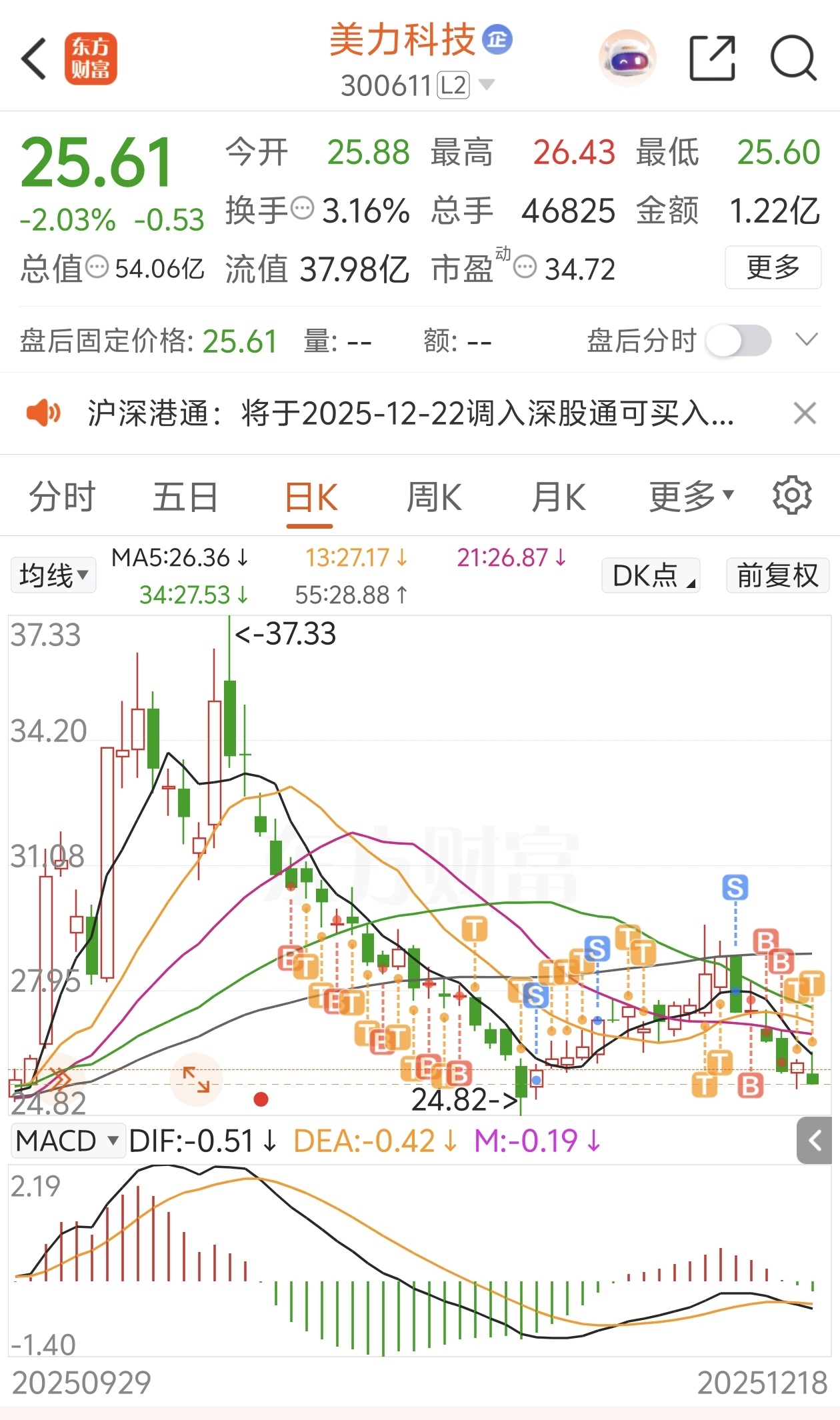 $美力科技(SZ300611)$ 好不容易把成本T到25.98,收盘一看还是亏损的,明天继续T。