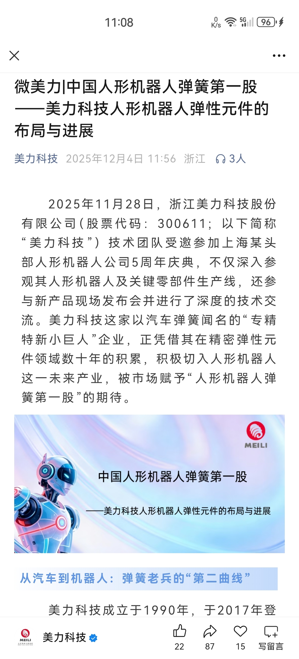 $美力科技(SZ300611)$ 人形机器人弹簧第一股!
