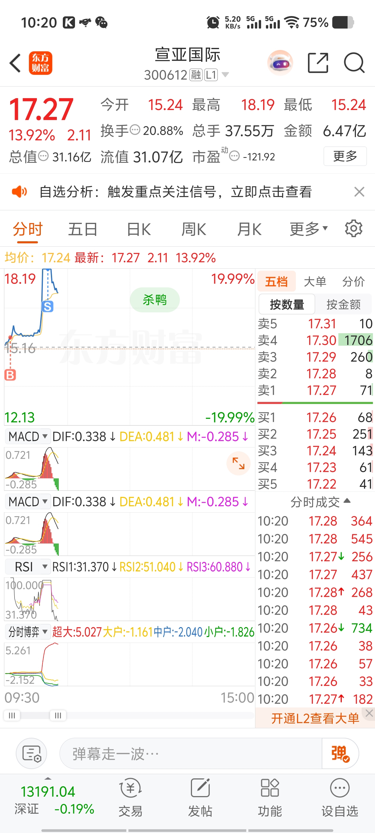 $宣亚国际(SZ300612)$ 还好把早上补的卖了