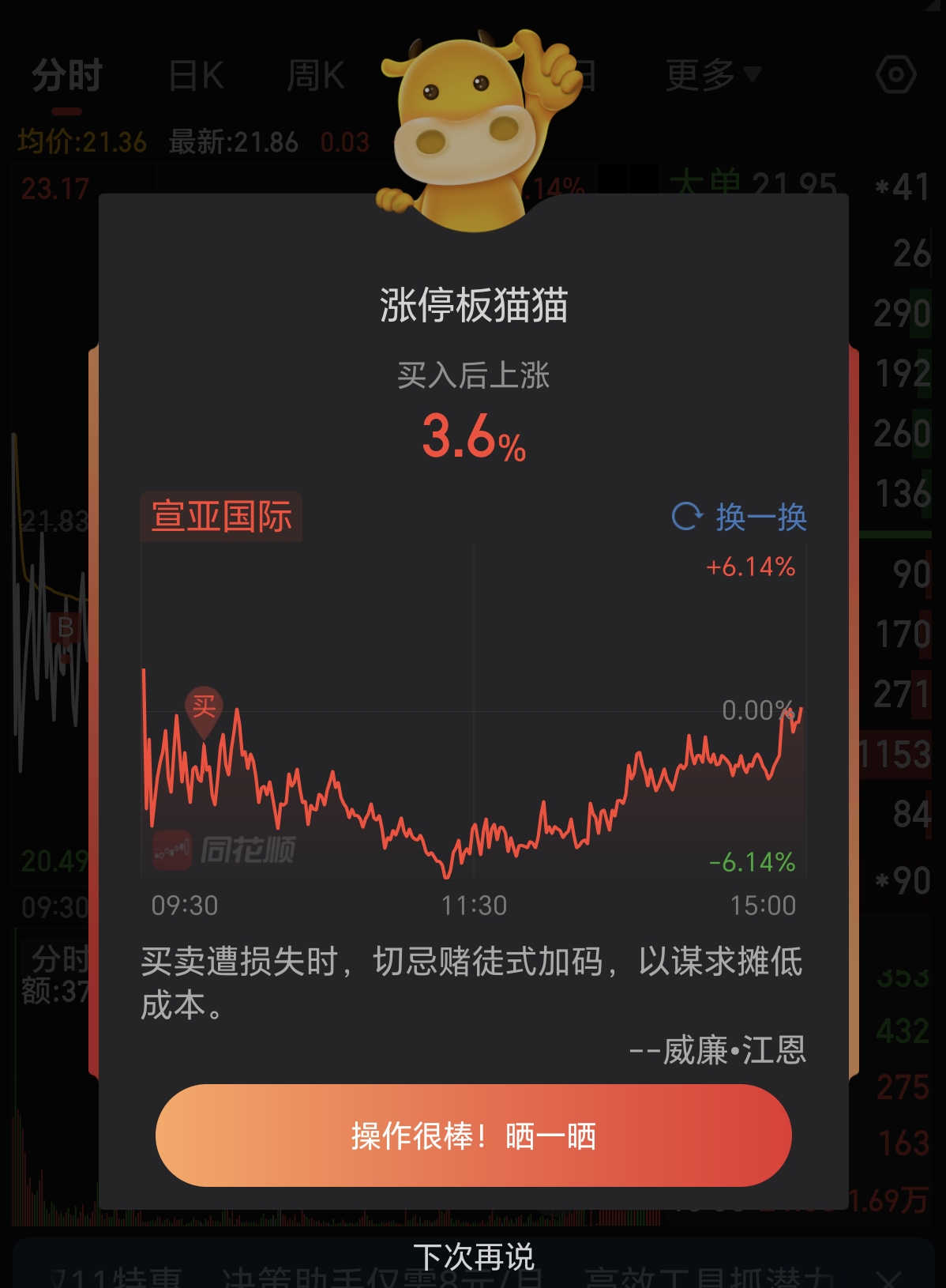 分3笔换仓到宣亚国际,小赚,明天冲高8个点就赚11个点啦