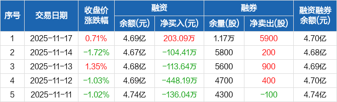 富瀚微:融资净买入203.09万元,融资余额4.69亿元(11-17)