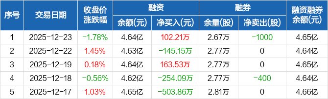 富瀚微:融资净买入102.21万元,融资余额4.64亿元(12-23)