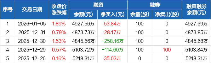 百川畅银:融资净买入53.84万元,融资余额4927.56万元(01-05)