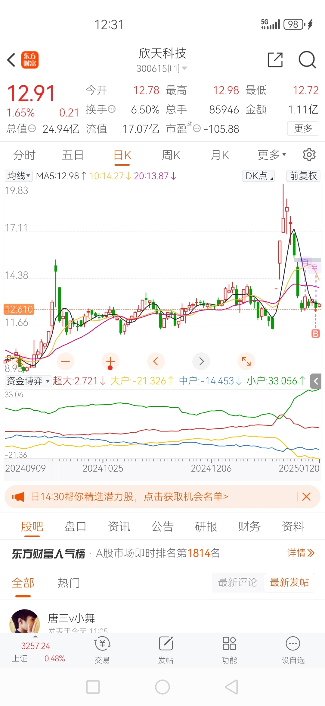 $欣天科技(SZ300615)$ 不给我12.35补,我就追高补咯
