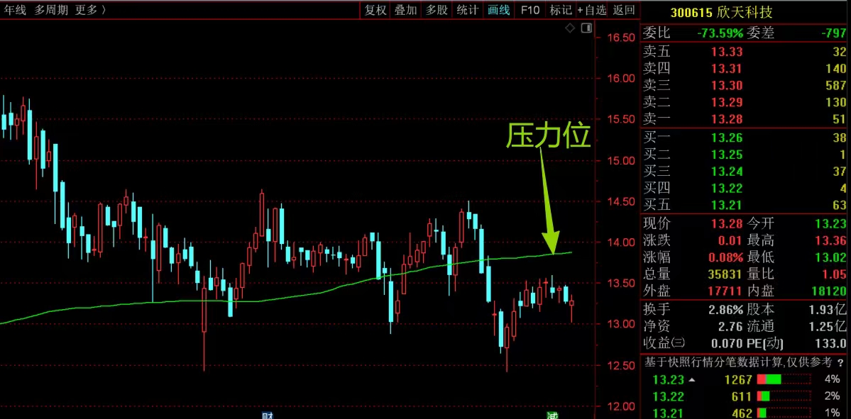 $欣天科技(SZ300615)$ 中期趋势本来就不强,前段时间在绿色大均线附近震荡折腾后,最近跌破了大均线,虽然没有远离,但迟迟站不回去,明显走弱了,这种形态下不能重仓参与,控制好仓位谨慎应对为主。#炒股日记# #周度策略#