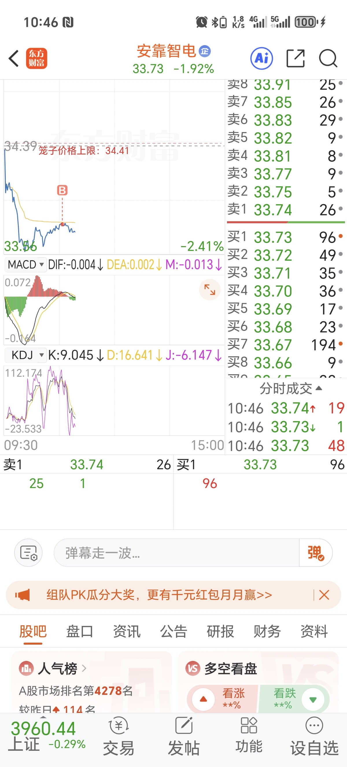 $安靠智电(SZ300617)$ 60手,干就完了