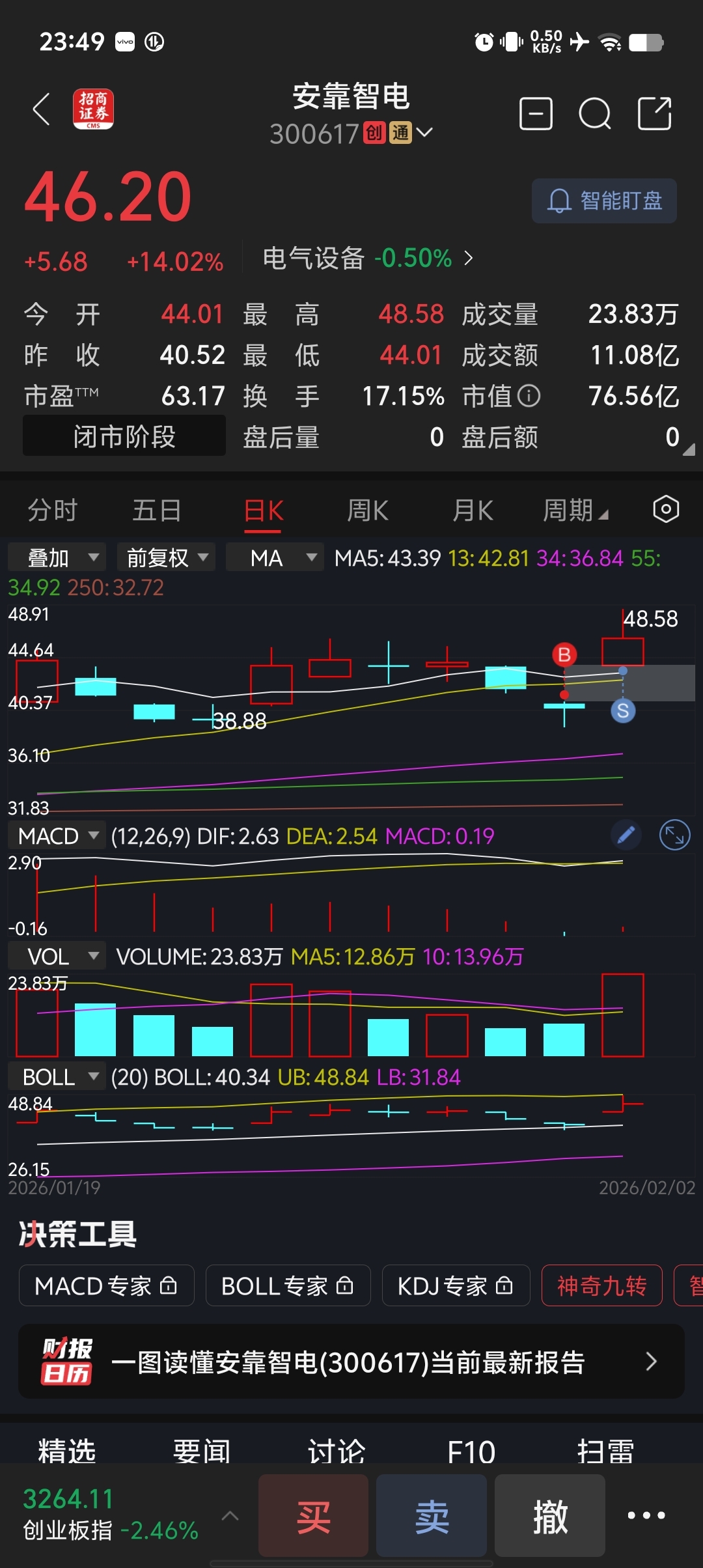 $安靠智电(SZ300617)$ 两年持股#收盘点评# #炒股日记# #复盘记录# #强势机会#