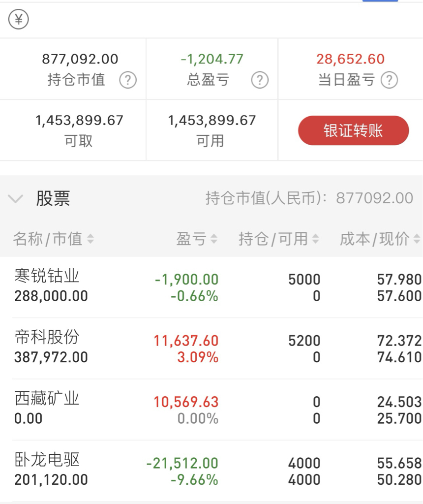 计划的第一百天新仓新仓持有不动西藏矿业:吃肉