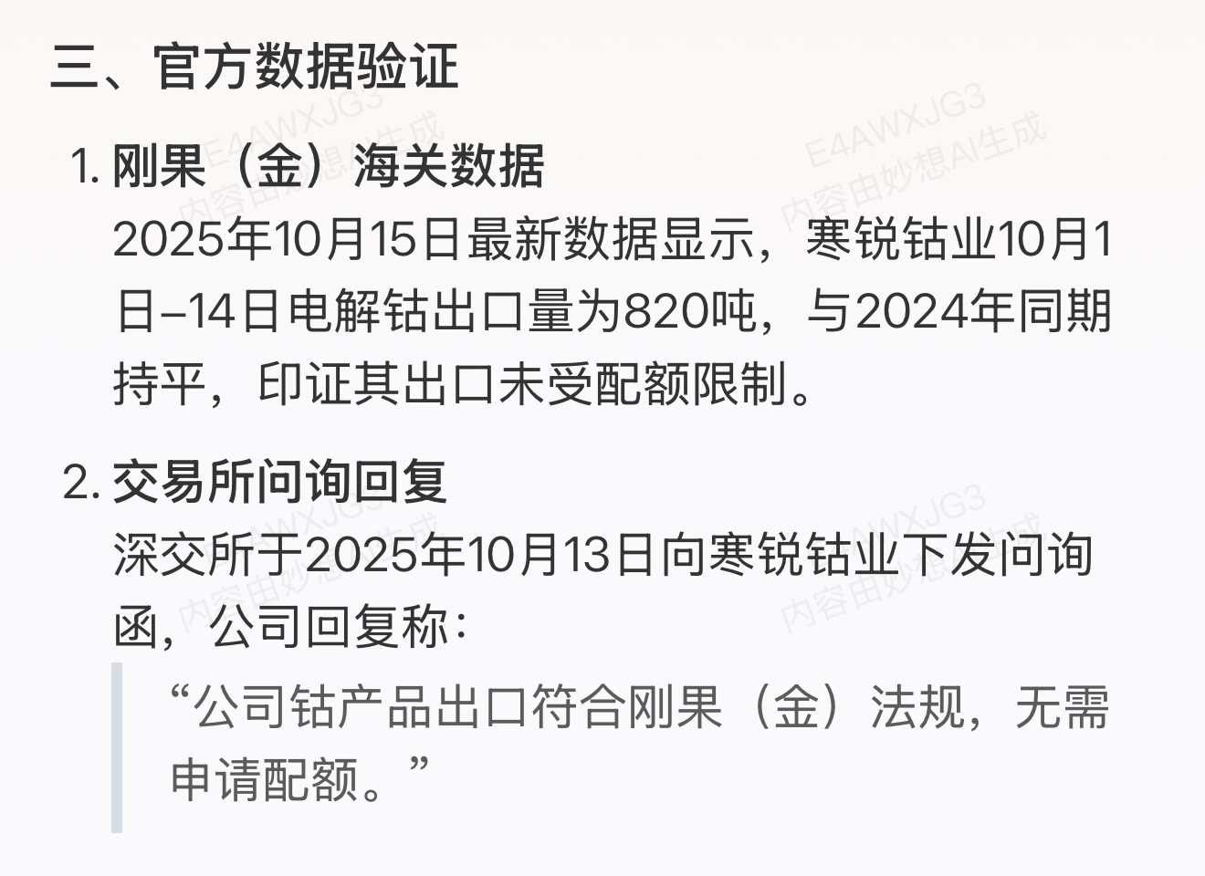 $寒锐钴业(SZ300618)$ 无需申请配额,可以正常出口
