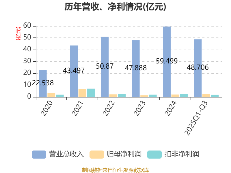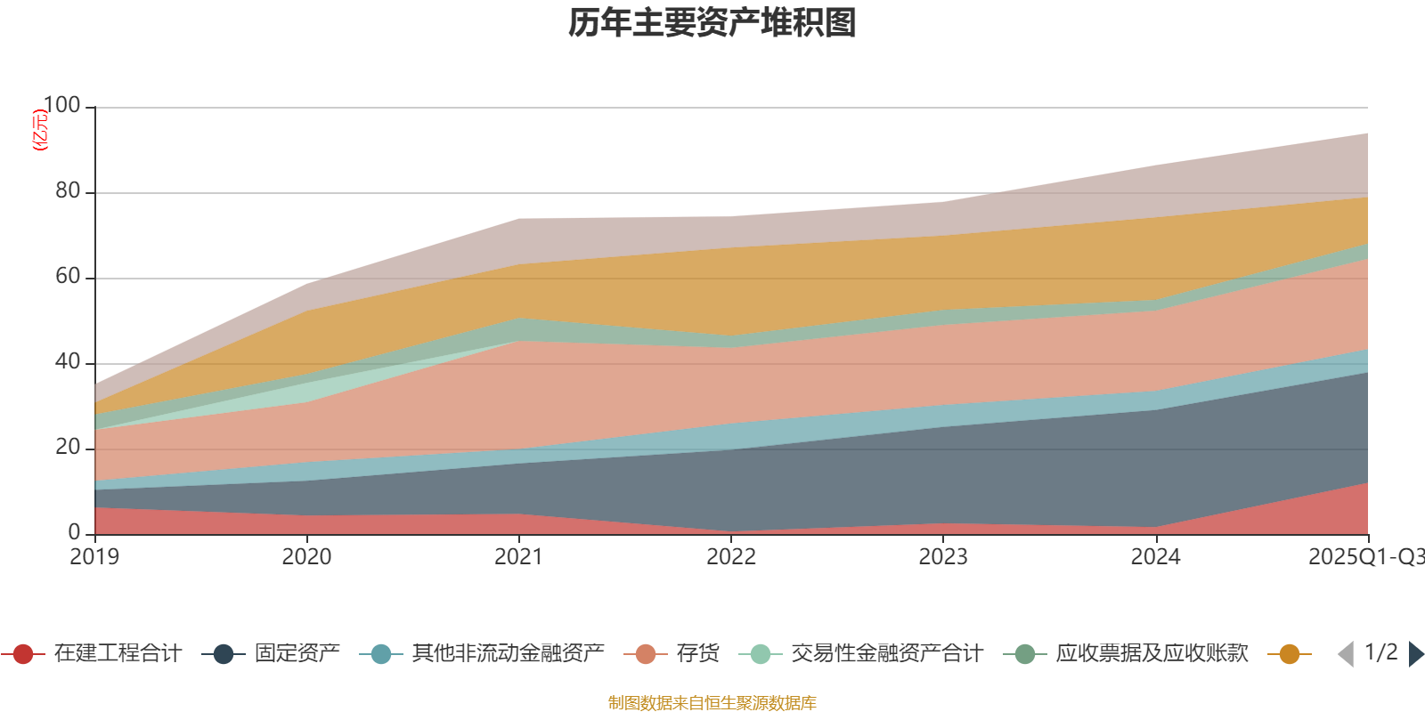 资产重大变化方面,截至2025年三季度末,公司在建工程合计较上年末增加632.6%,占公司总资产比重上升10.86个百分点;货币资金较上年末减少43.55%,占公司总资产比重下降10.74个百分点;固定资产较上年末减少5.43%,占公司总资产比重下降4.12个百分点;其他流动资产较上年末增加61.87%,占公司总资产比重上升1.31个百分点。