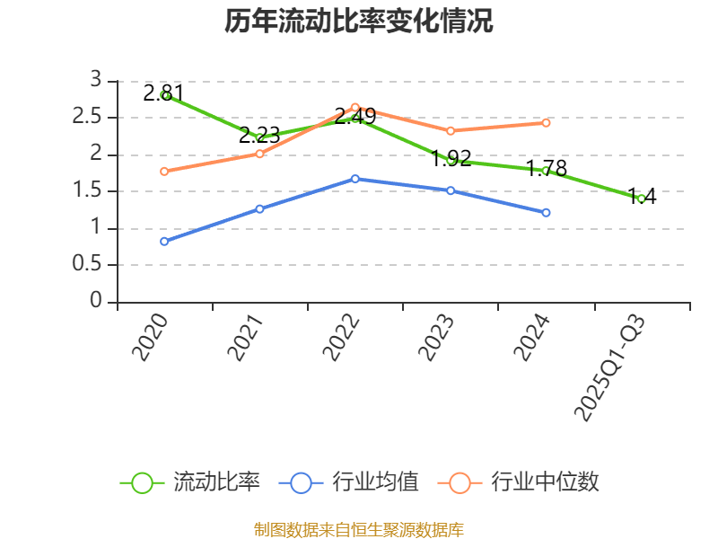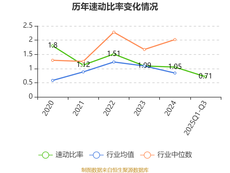 2025年前三季度,公司流动比率为1.4,速动比率为0.71。
