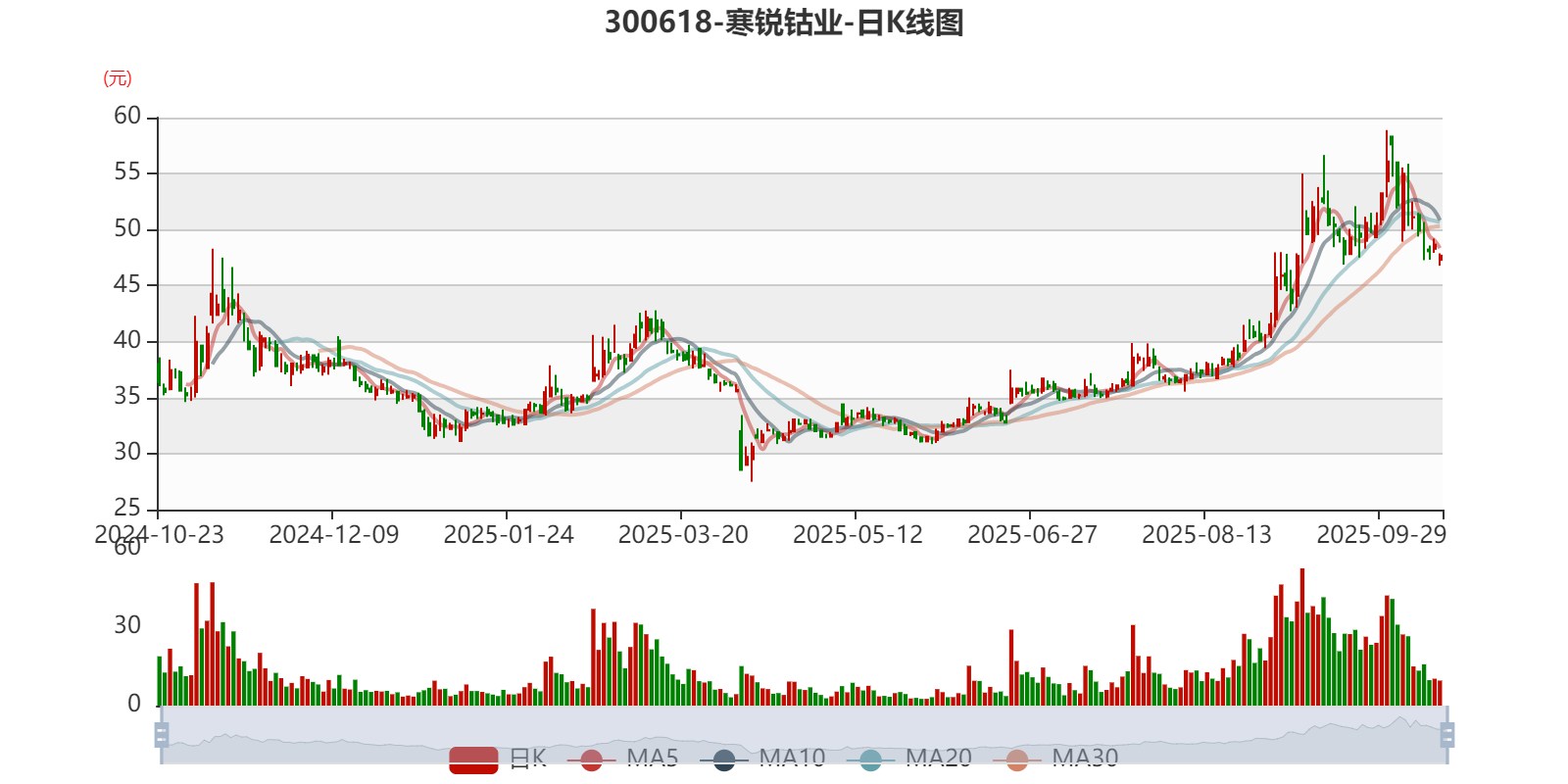 以10月22日收盘价计算,寒锐钴业目前市盈率(TTM)约为53.88倍,市净率(LF)约2.64倍,市销率(TTM)约2.21倍。