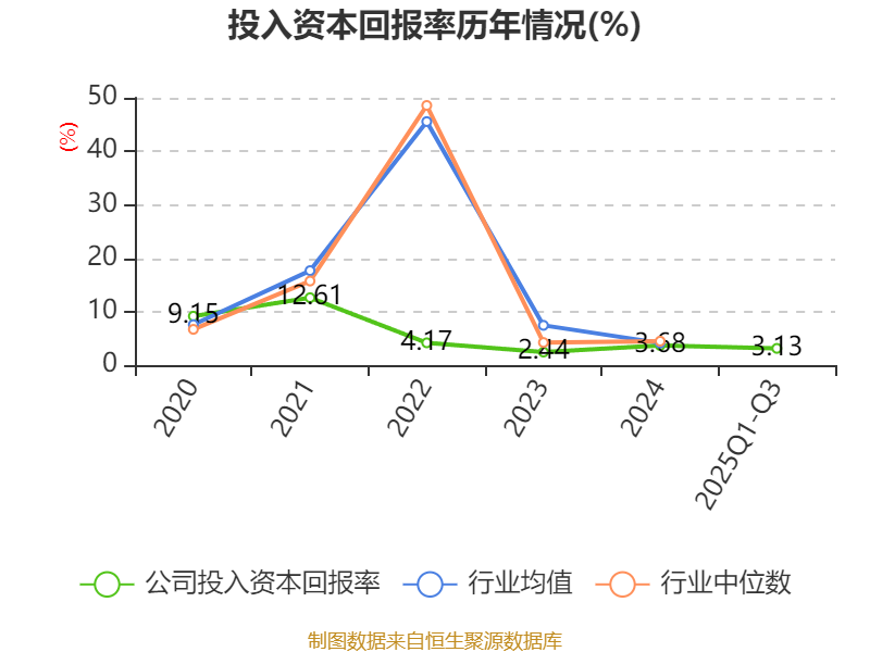 盈利能力方面, 2025年前三季度公司加权平均净资产收益率为4.3%,同比上升1.12个百分点。公司2025年前三季度投入资本回报率为3.13%,较上年同期上升0.05个百分点。