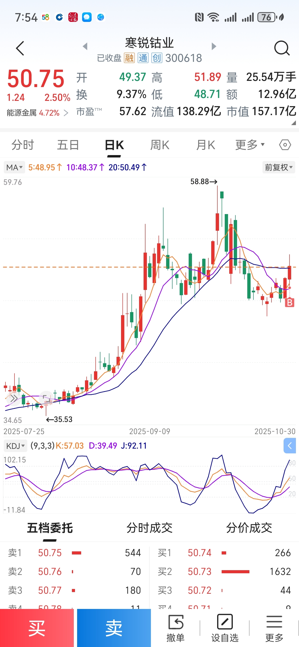 $寒锐钴业(SZ300618)$ 吃肉我就跑