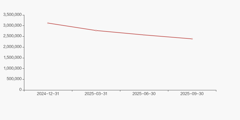 截至2025年11月28日,公司最新总股本为3.1亿股,其中流通股本为2.72亿股。户均持有流通股数量由上期的3612股上升至4388股,户均流通市值19.39万元。
