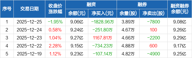 寒锐钴业:融资净偿还1828.96万元,融资余额9.06亿元(12-25)