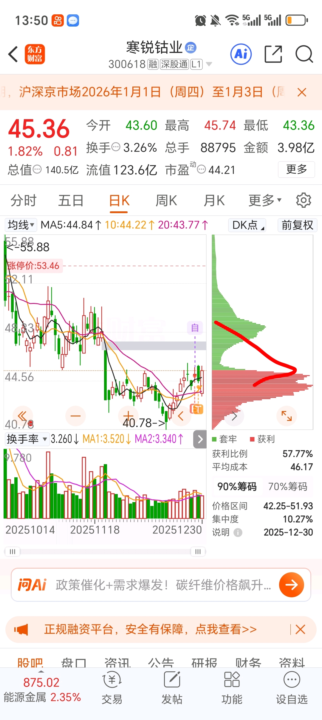 $寒锐钴业(SZ300618)$ 要双峰填谷,上下震荡,没那么快估计