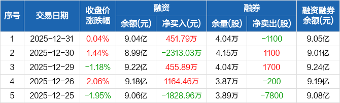 寒锐钴业:融资净买入451.79万元,融资余额9.04亿元(12-31)