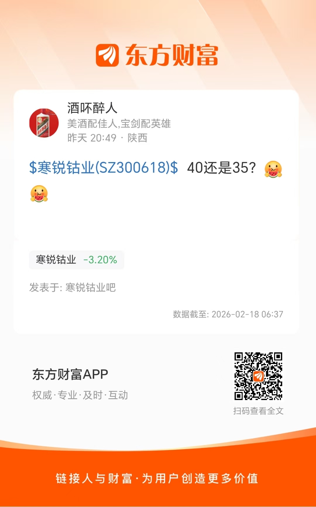 温馨提示: 1.根据《证券法》规定,禁止编造、传播虚假信息或者误导性信息,扰乱证券市场;2.用户在本社区发表的所有资料、言论等仅代表个人观点,与本网站立场无关,不对您构成任何投资建议。用户应基于自己的独立判断,自行决定证券投资并承担相应风险。《东方财富社区管理规定》